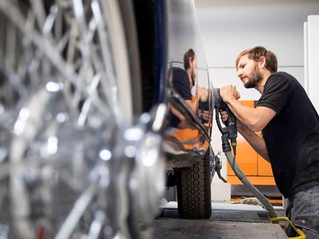 In onze plaatwerkerij wordt beschadigd plaatwerk deskundig hersteld. We herstellen de onderdelen en auto's door uitdeuken, vlakken en vormgeven, zowel van staal als aluminiumplaat. Als herstel niet mogelijk is, vervangen we het beschadigde deel en lassen het in. Indien nodig maken we nieuw plaatwerk op maat in onze werkplaats.
